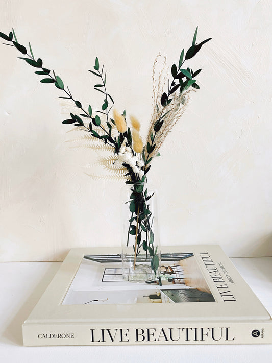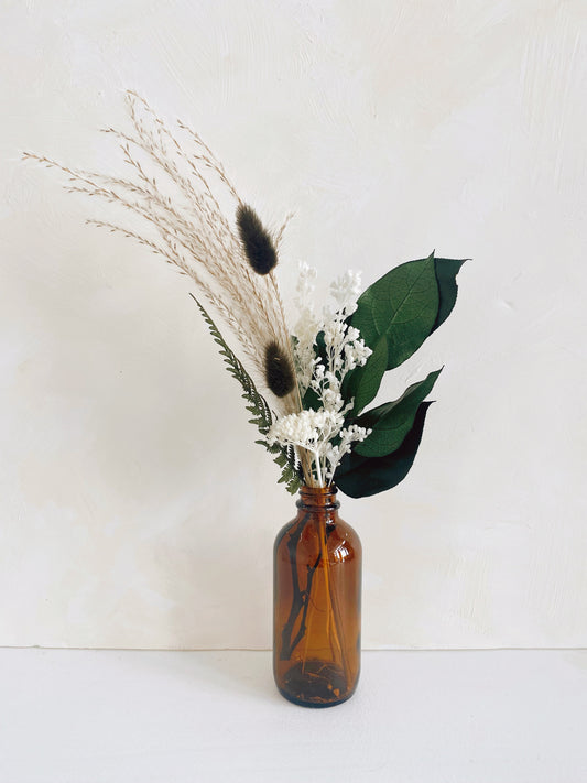 Mini Dried Floral Arrangements in Glass Bottle | Restaurant/Event Table Decor