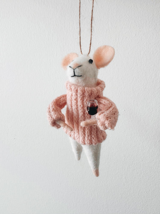 Sold outWine Mouse Ornament Pink Sweater
