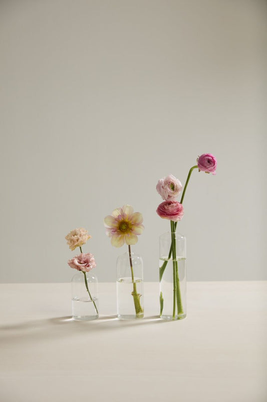 $100 minimum for vase rentals. Delivery and pickup available in the GTA for a delivery fee. Our Glass Jug Vase, Lyric Budvases, and Highball Vases are available as rentals.